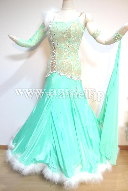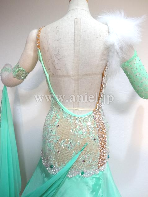 白の羽根が胸元とスカートの裾に装飾として付いています。