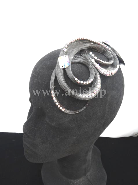 社交ダンス用のシニヨン、ヘアオーナメントです。ご自分の髪を1つにまとめてかぶせるだけで、美容院で髪上げしたような仕上がりとなります。