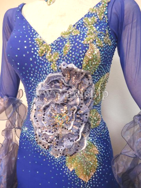 ボディの大きな立体的に付けられた花のモチーフはインパクトがあります。