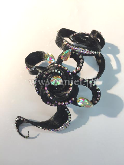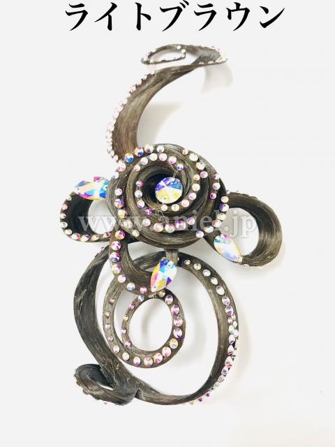 こちらの商品は片端のトルネード部分をシニョンに被せることにより、シニョンと飾りが一体化したデザインになり、ヘア全体のトータルコーディネートが可能です。シニヨンを上下どちらに作っても素敵にきまり、違った雰囲気を楽しめます。