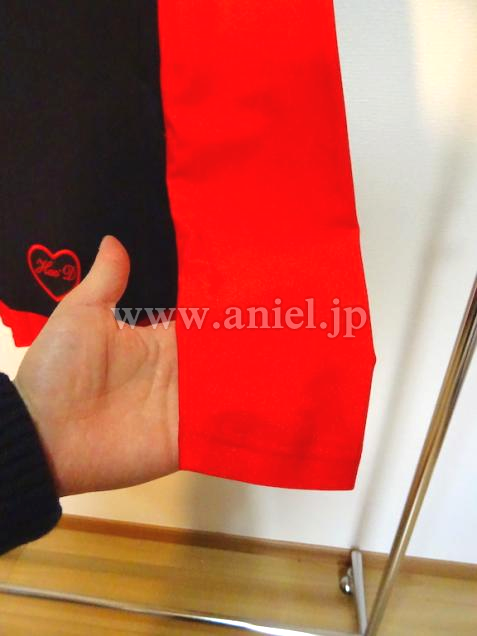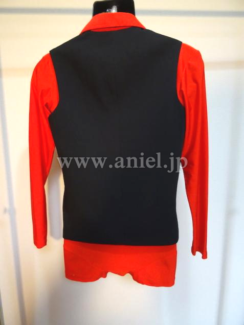 真っ赤に黒のベストとスタイリッシュな組み合わせの衣装です。