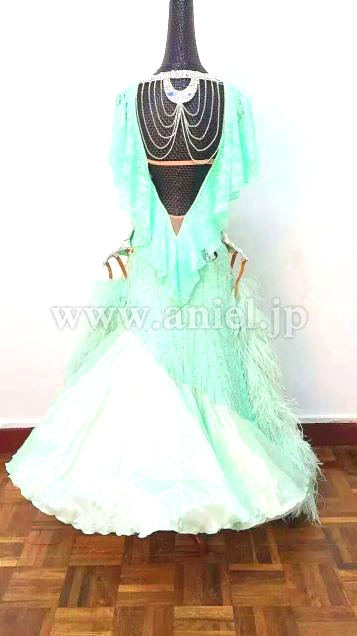 上品なアップルグリーンが素敵なドレスです。
