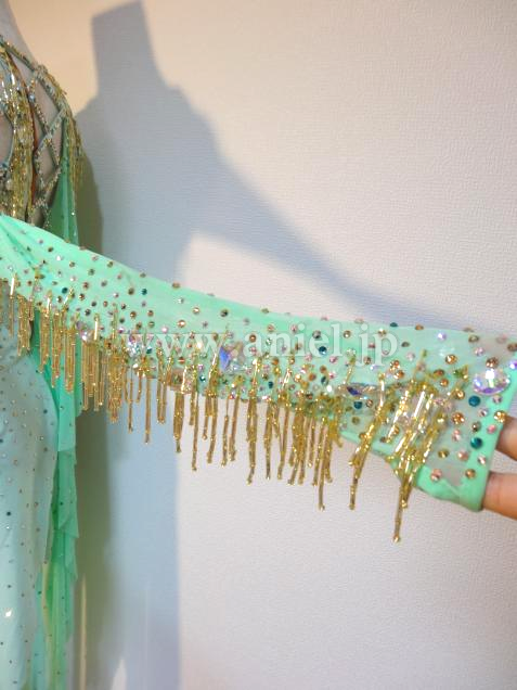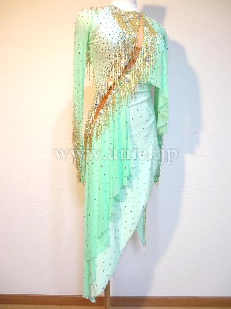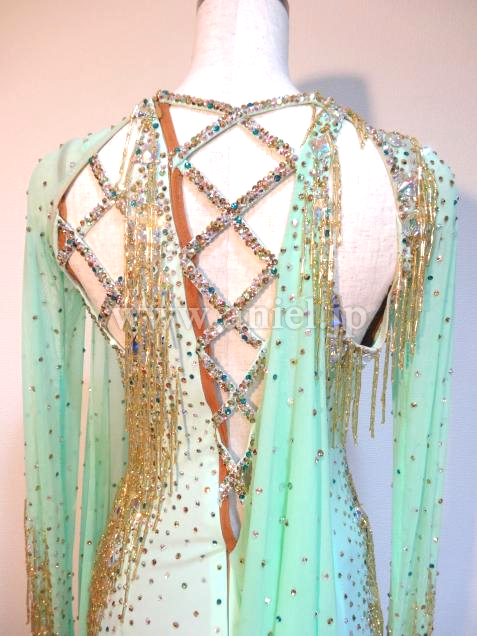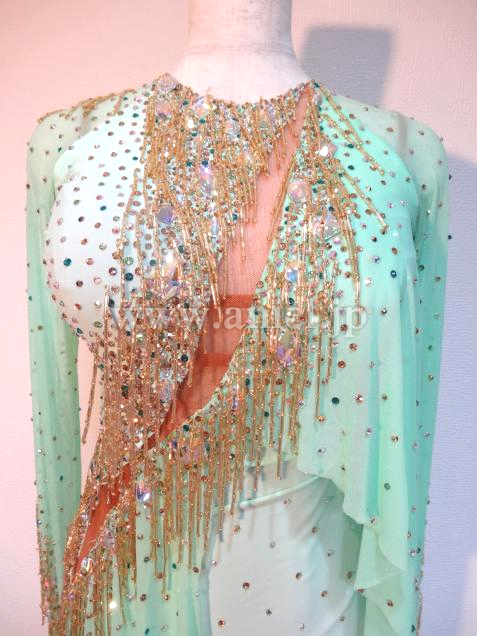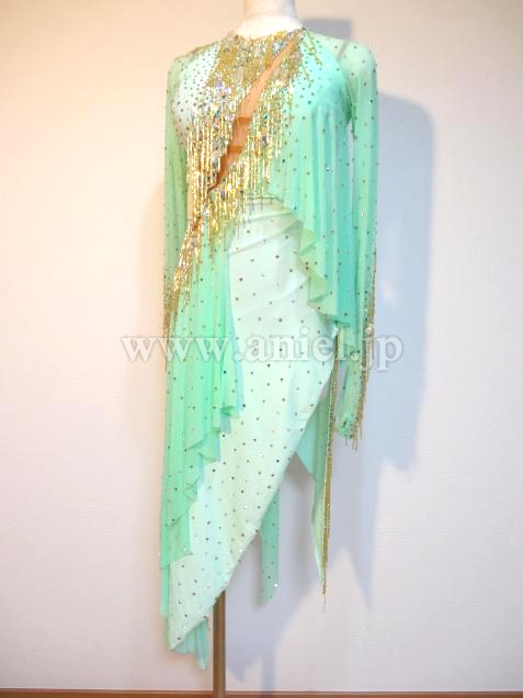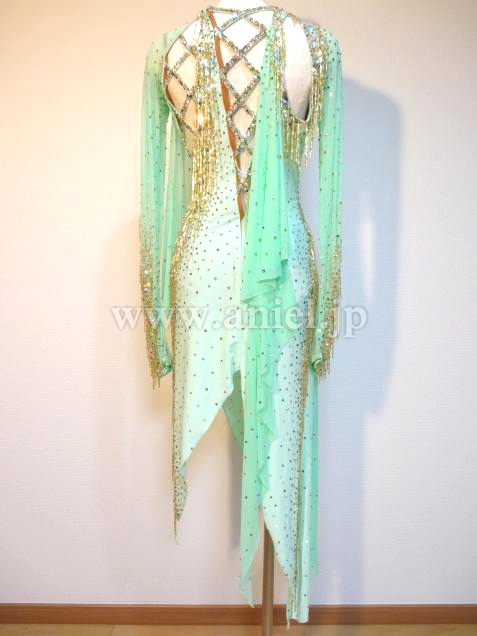 長袖ロングデザインで色も爽やか、上品なドレスです。