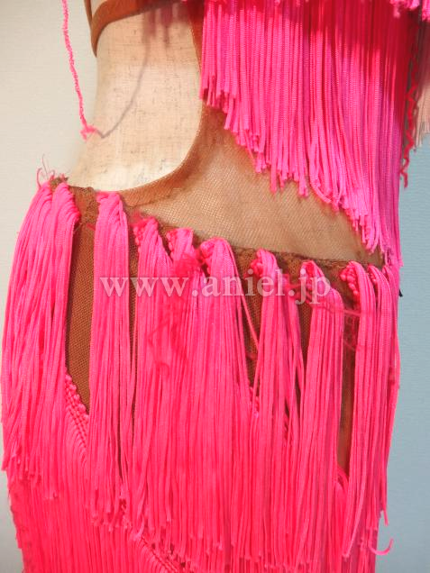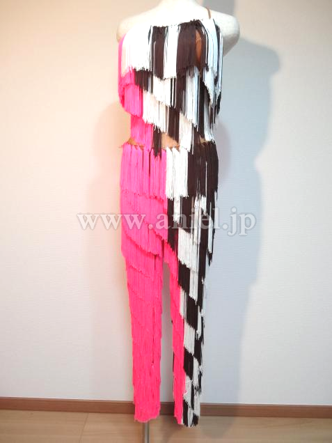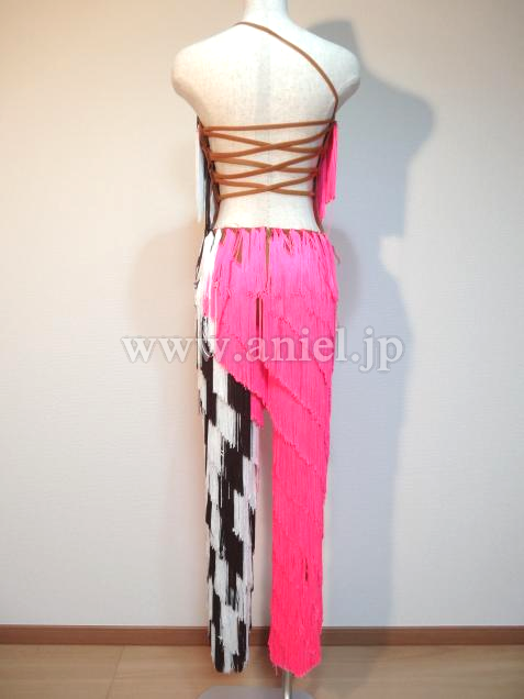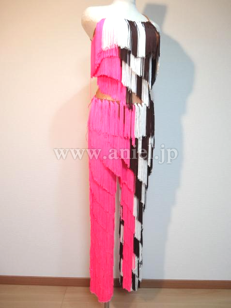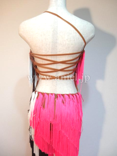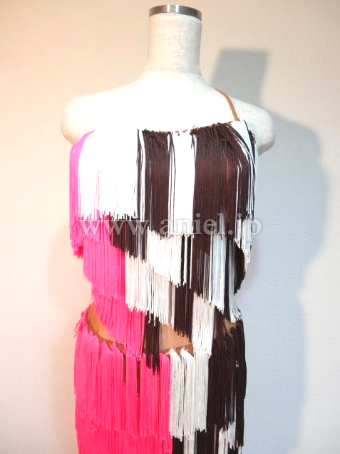 鮮やかなショッキングピンクと白と茶色のチェック柄フリンジが踊るととてもよく動きます。