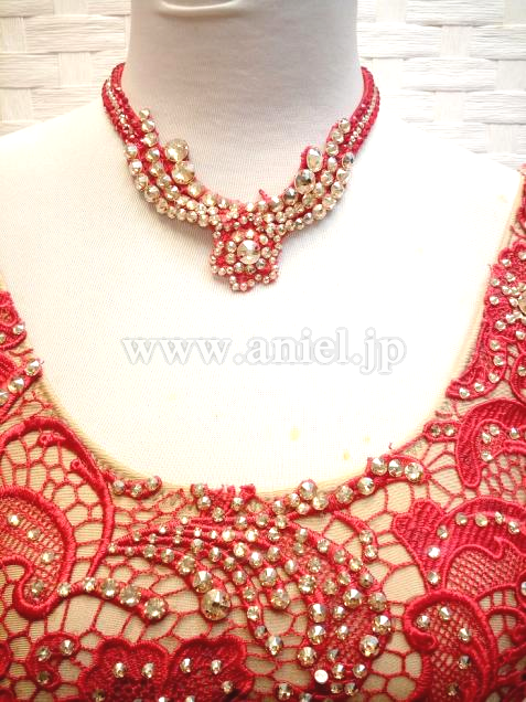 レースの上にはたくさんのゴールドのスワロフスキーストーンが散りばめられ華やかです。