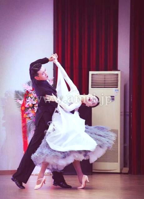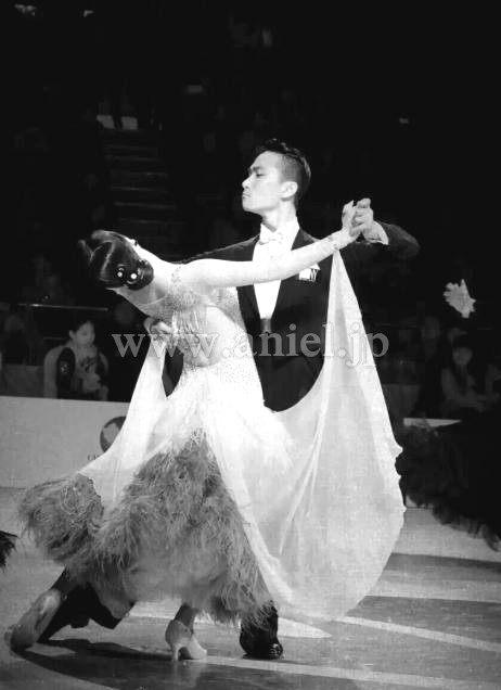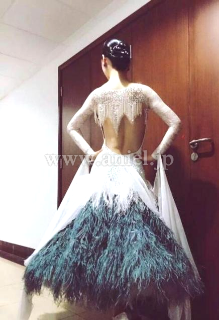 ホワイトとグレーの羽根をたっぷりと使ったゴージャスなボリュームスカートが特徴的なドレスです。