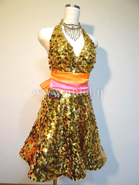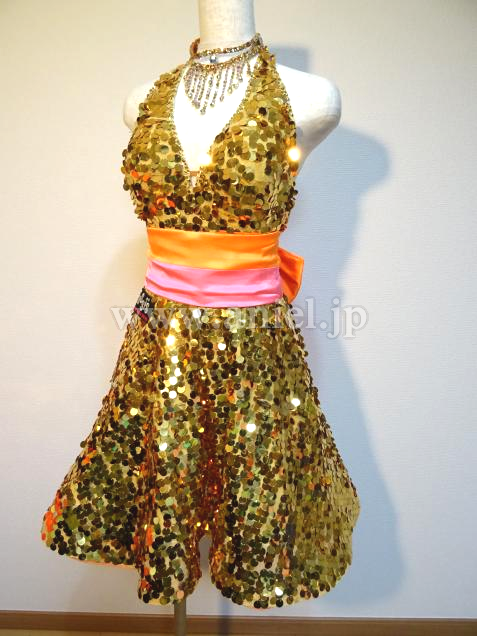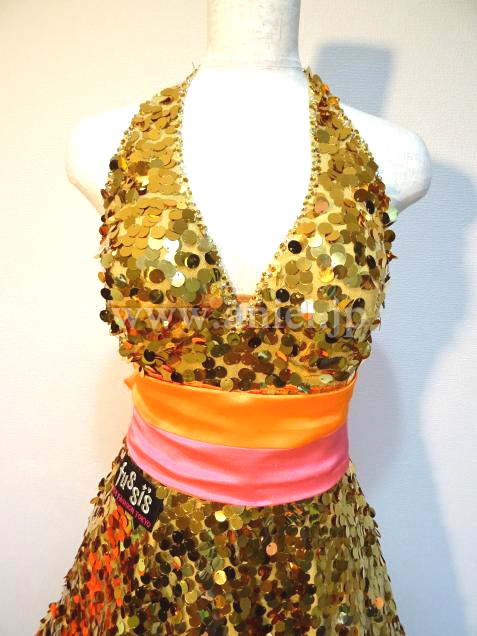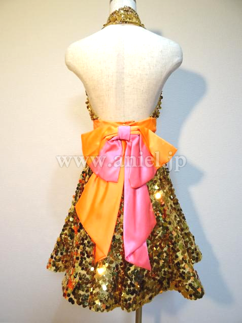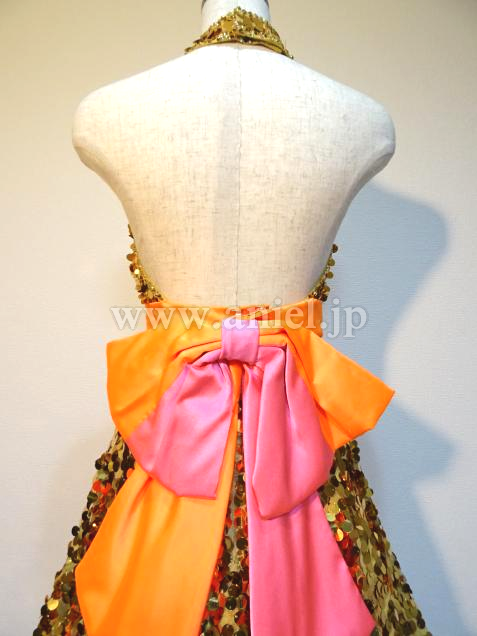 ピンクとオレンジのリボンのウエストベルトがアクセントになっています