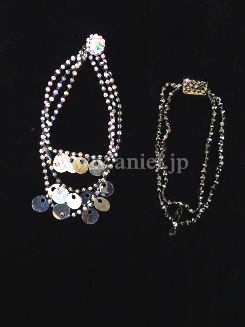 ネックレス2種、イヤリング、髪飾り付き。
