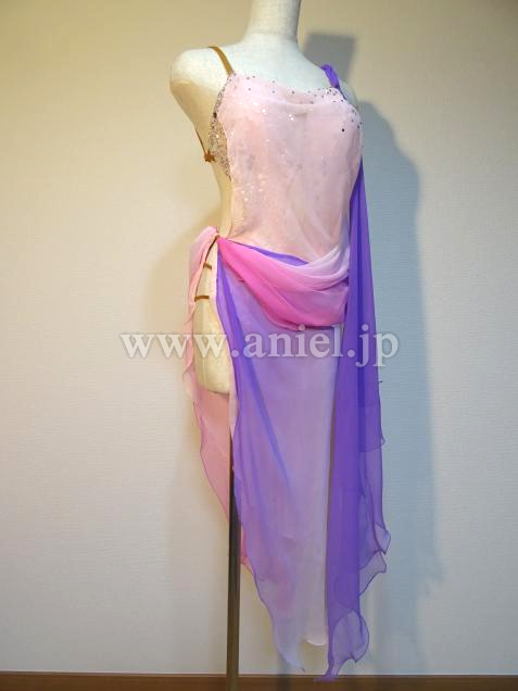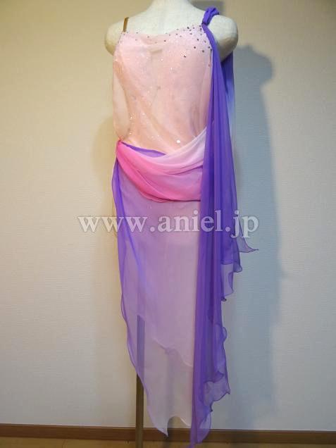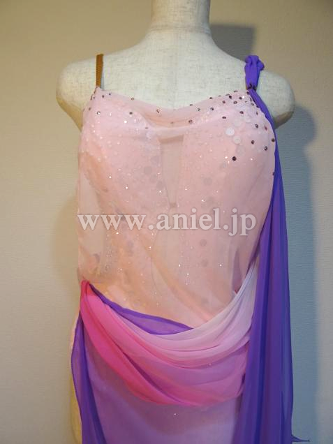 ピンクから紫のグラデーション生地が踊ると優雅に舞います。