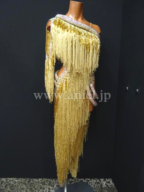 ゴールドのフリンジと、竹ビーズが、大変、良く踊ります。