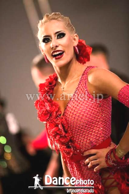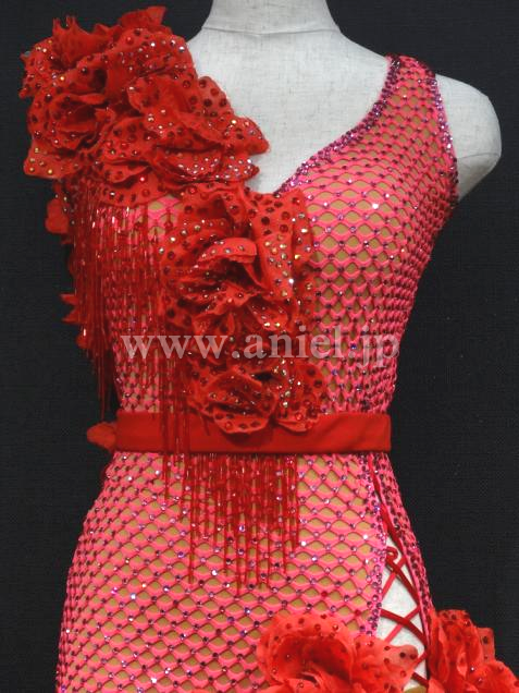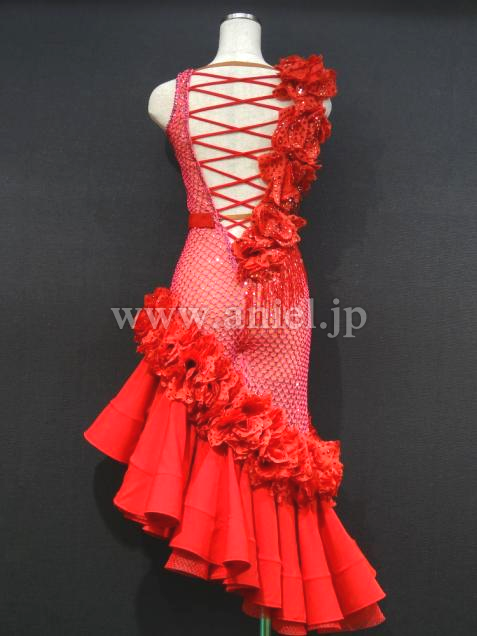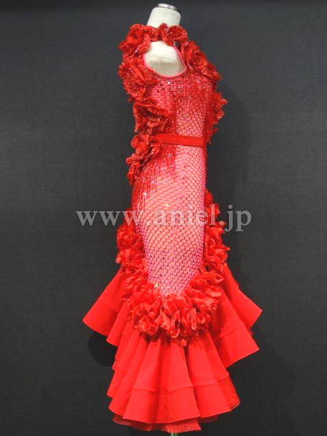 また、胸元と裾に付けられた花とビーズフリンジが踊りの動きを際立たせます。