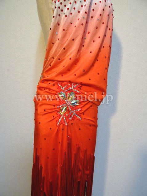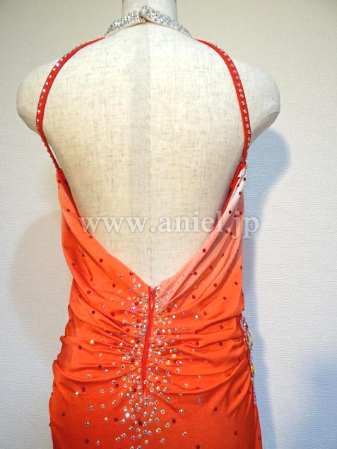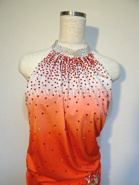 アメリカンアームホールデザインの首元にはたくさんのストーンが散りばめられています。