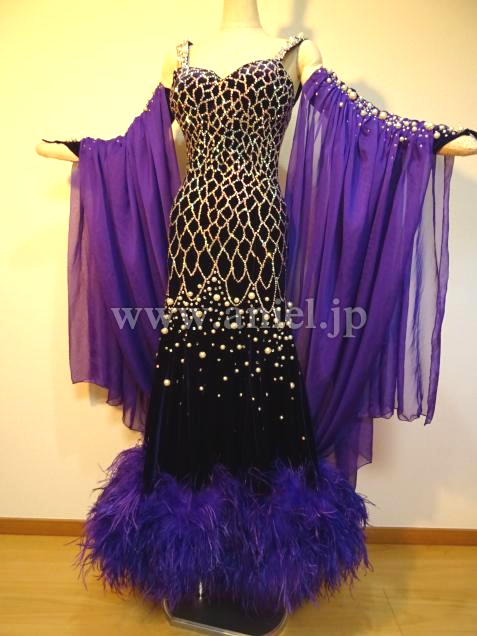 マーメイドラインのスカートにボリュームたっぷりのドレスがバランス良く、大きく踊ります。