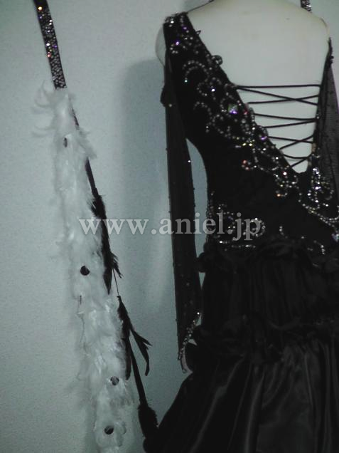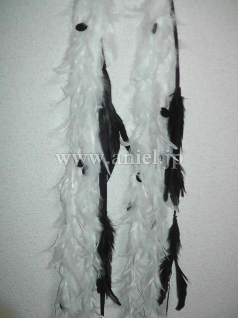 円周をたっぷり取ってありますのでボリュームがあり少し動いただけでも軽やかに踊ります。リボンに付けられた2色の羽根のフロートが可愛いです。