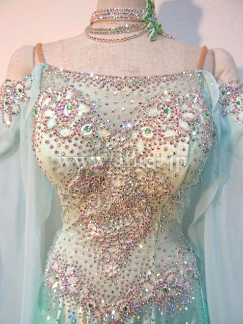 ボディはモチーフレースにスワロフスキーストーンがたっぷりと貼られ非常に輝きます。