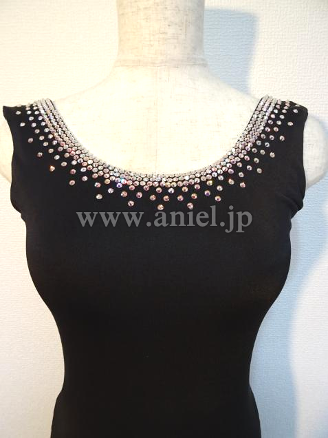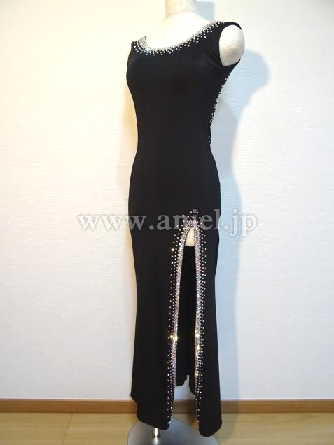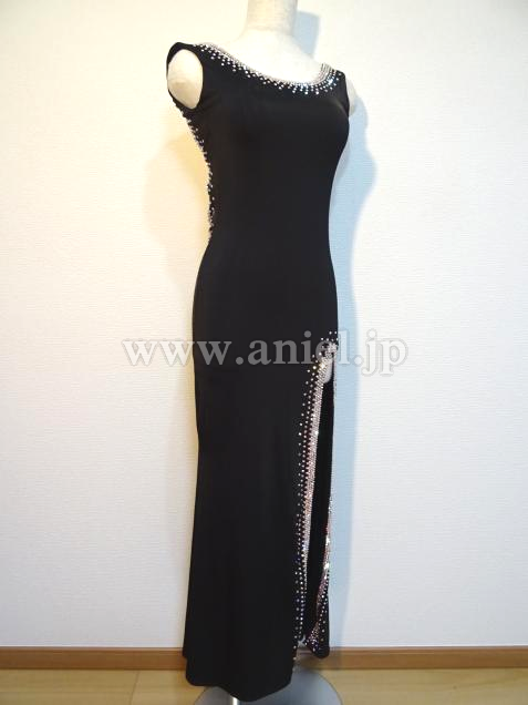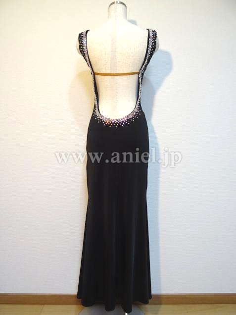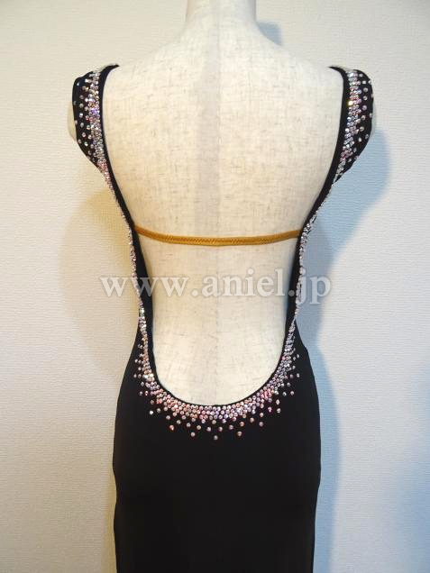 胸元から背中、スリット部分にはオーロラのスワロフスキーストーンがびっしり貼られています。