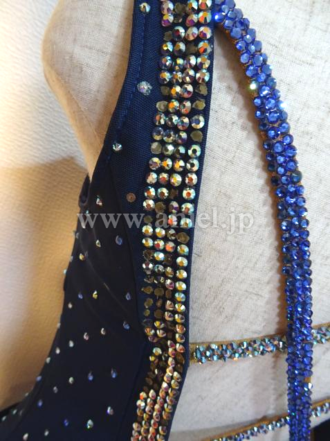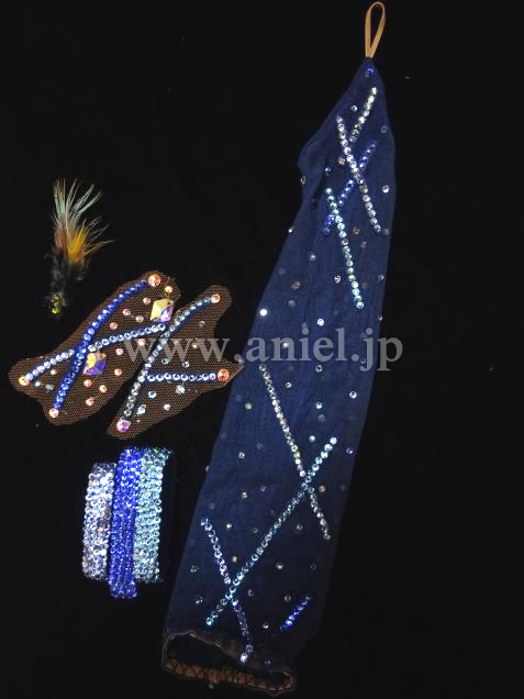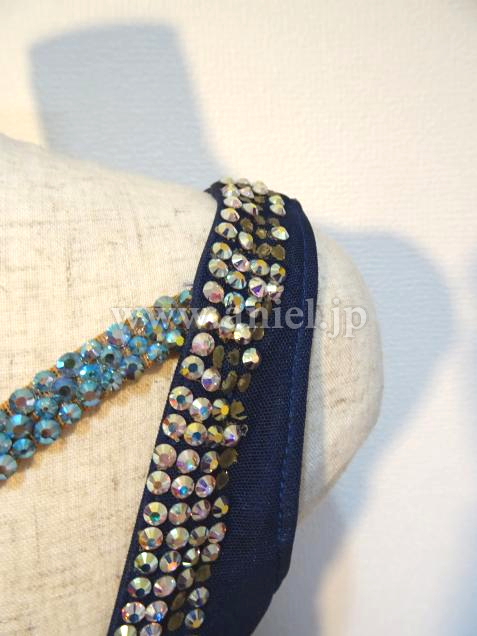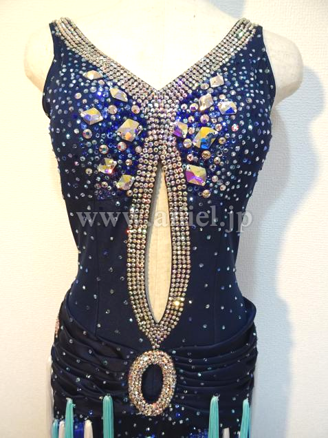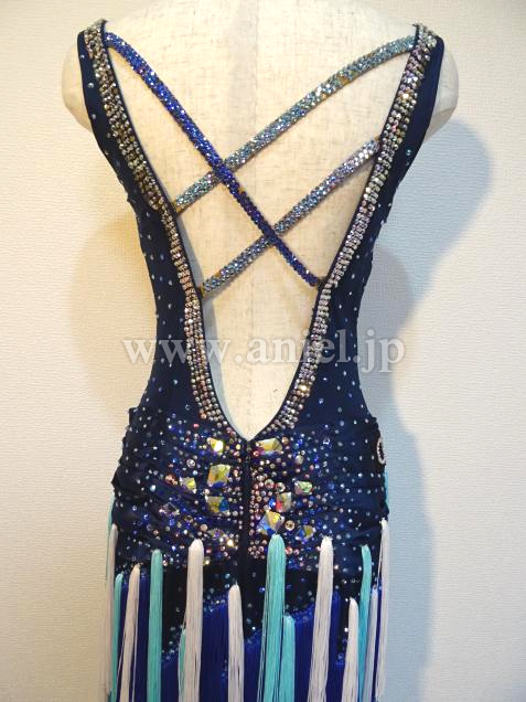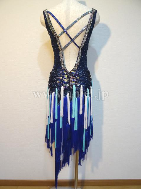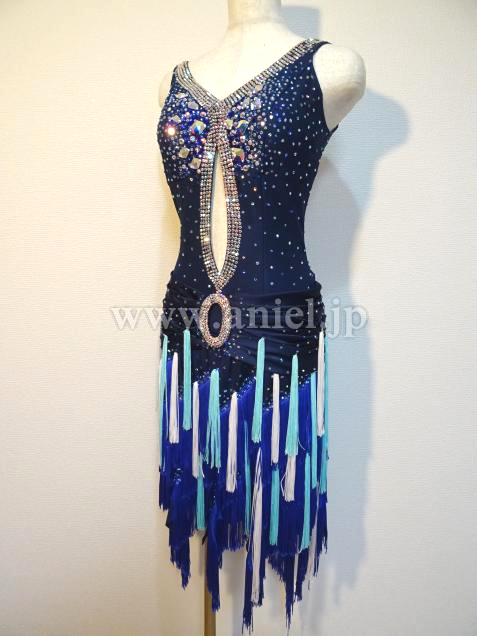 シックな紺のボディと明るい水色や白のフリンジのコントラストがフロアで目立ちます。