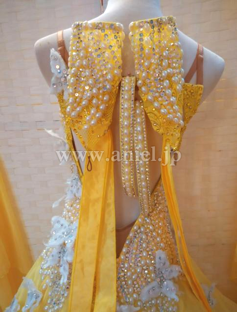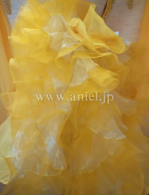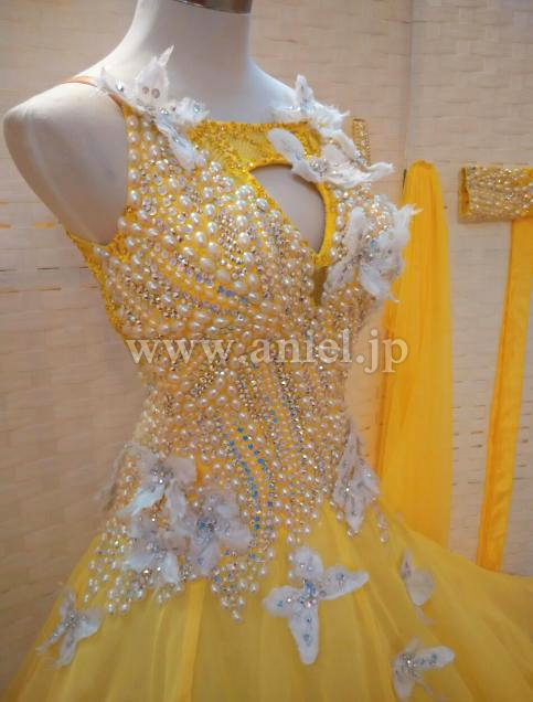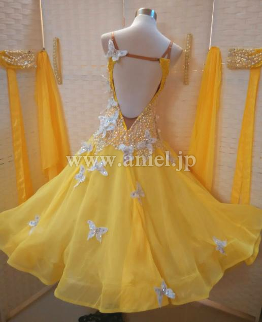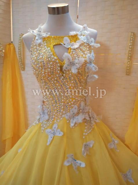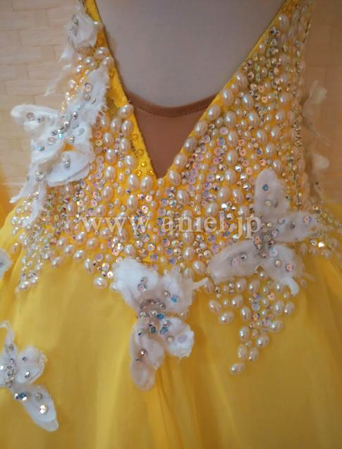 黄色のボディにホワイトの蝶々が舞うキュートなドレスです。
