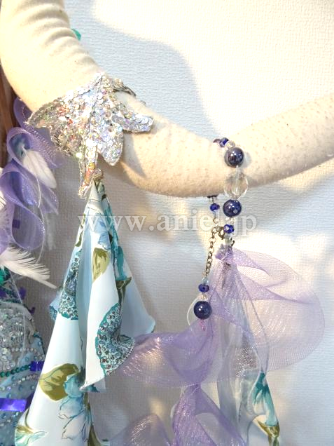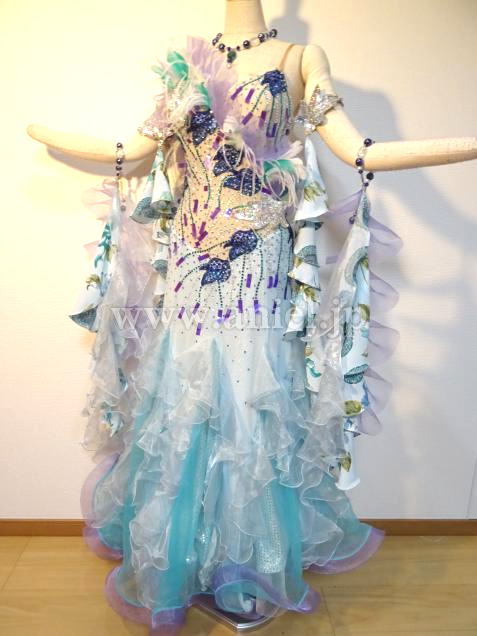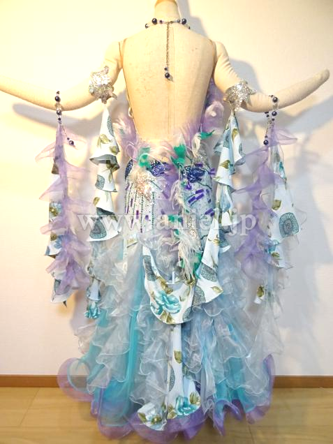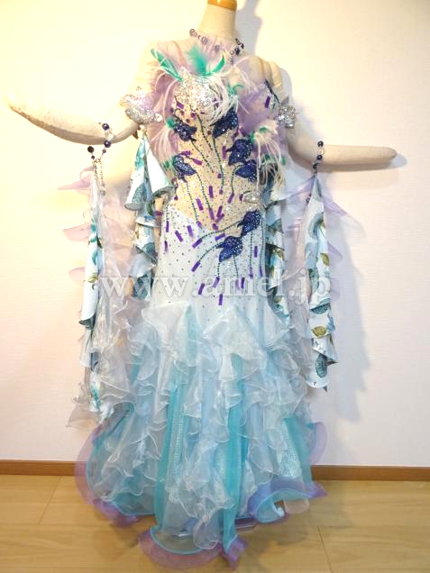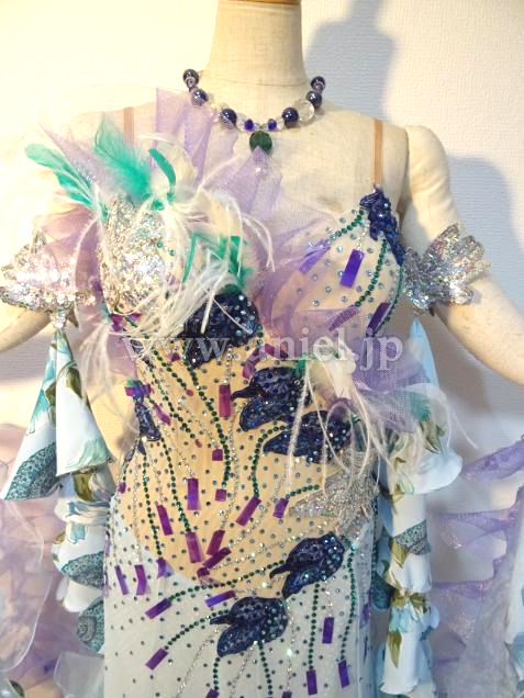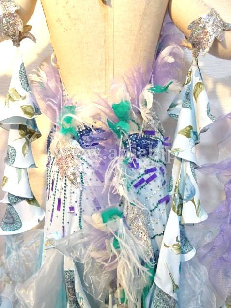 羽根やホースヘアーなどがたっぷりと装飾された華やかなドレスです。