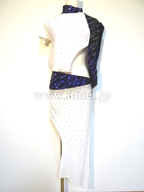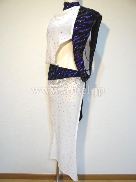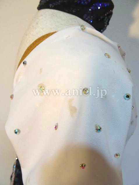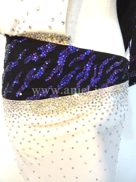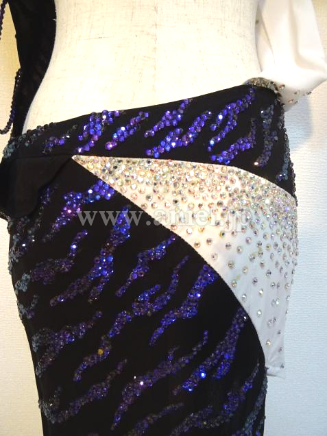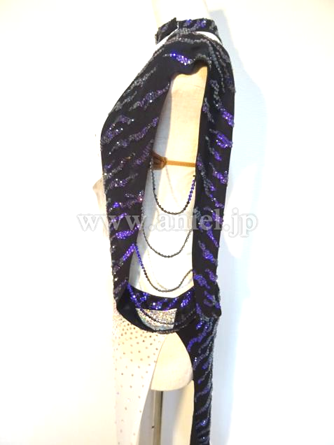 肩とヒップのラインには模様に沿って紫のスワロフスキーストーンがびっしり貼られゴージャスです。