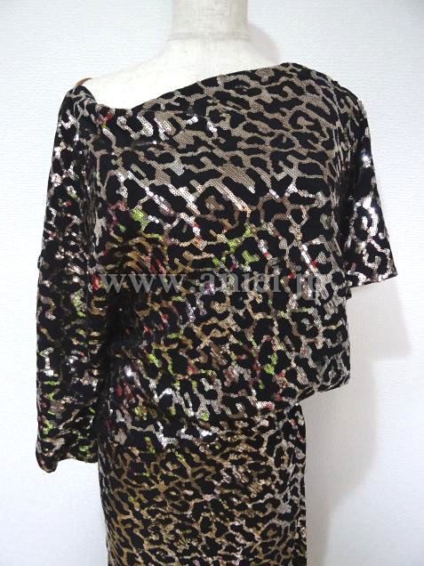シルバースパンコールの生地がきらびやかなドレスです。