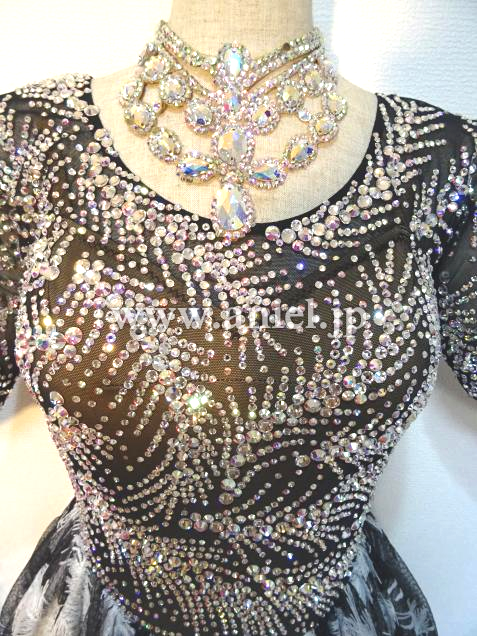ボディは大小のスワロフスキーストーンでびっしりと羽根模様が描かれており非常にゴージャスです。
