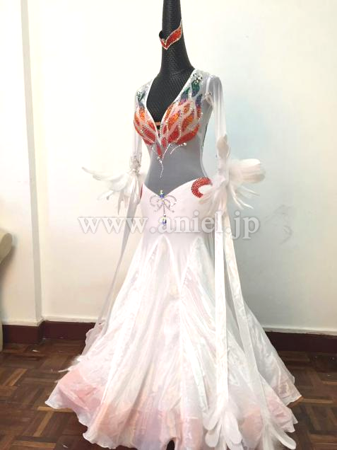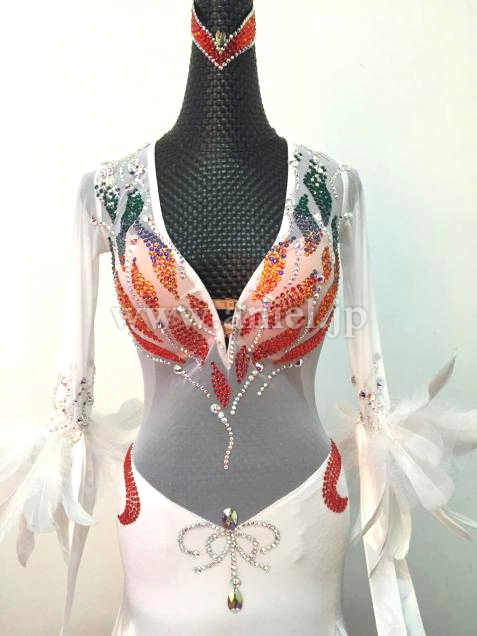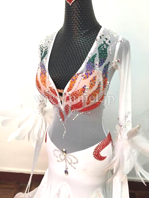 インナースカートや胸元のストーンがカラフルで美しいドレスです。