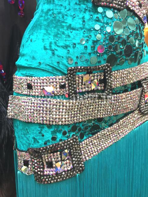 スカートは膝上くらいのフリンジでよく動きます。アクセサリーは輪っかの腕輪が5つ、ベルト型のバングル3つ、イヤリングです。