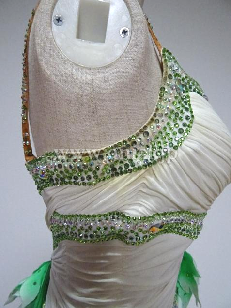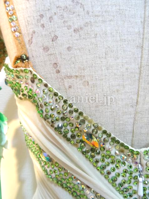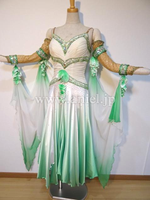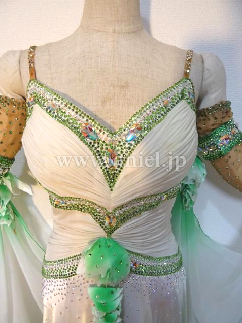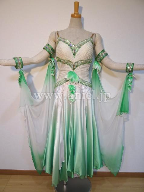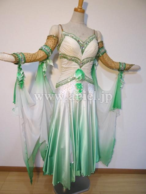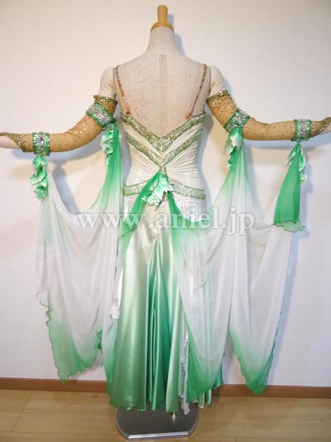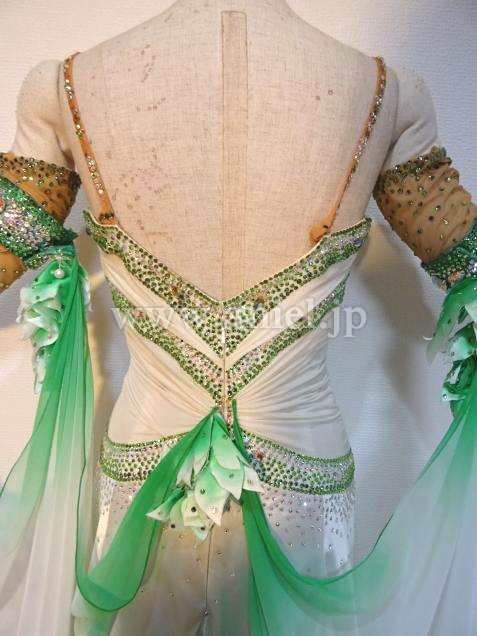 白から緑のグラデーションが美しいドレスです。
