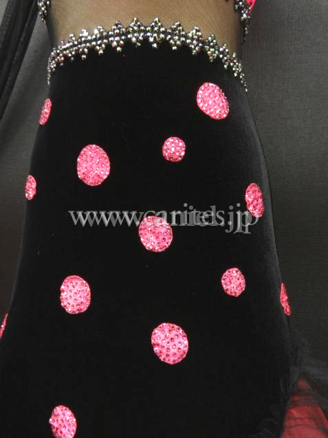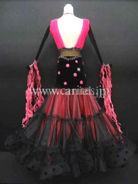 黒のベルベットにピンクのドットのラブリーなドレス。