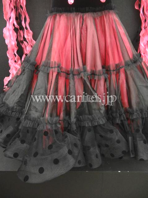 インナースカートのピンクが見えるように、黒のチュール生地が一番上についています。