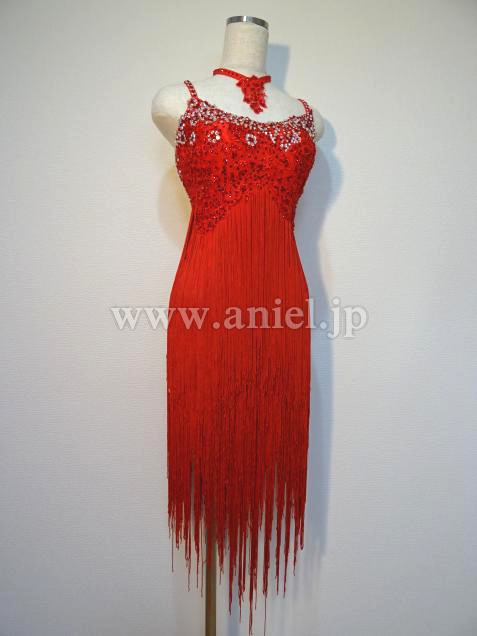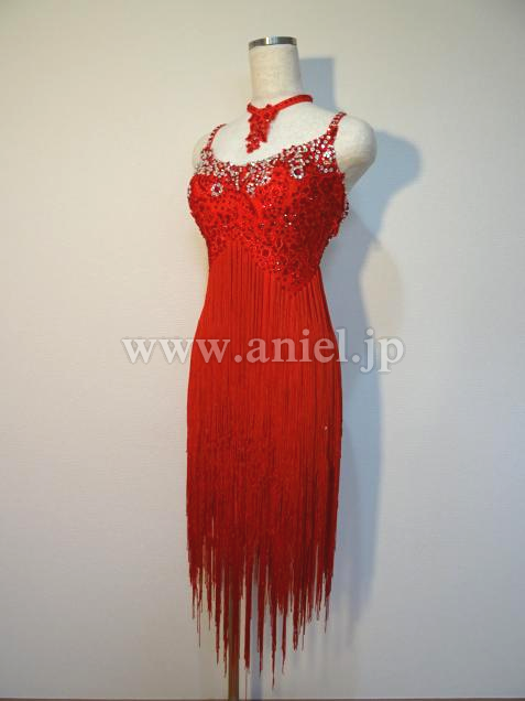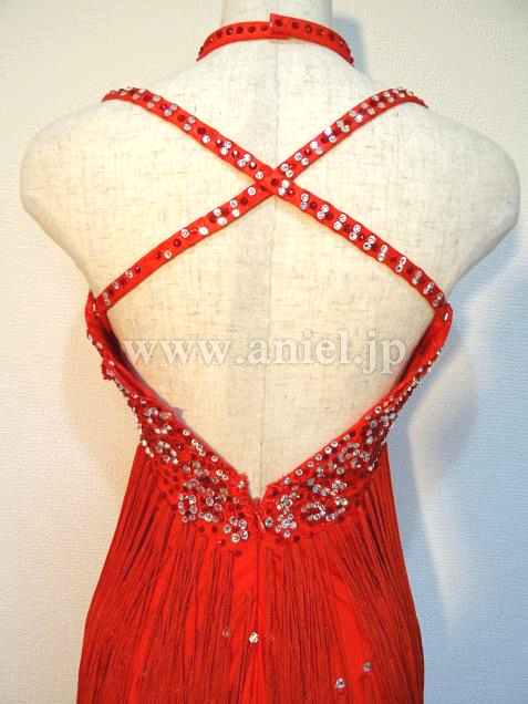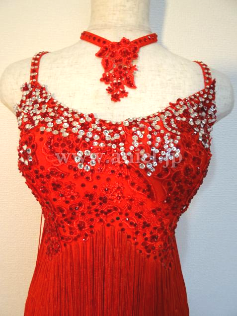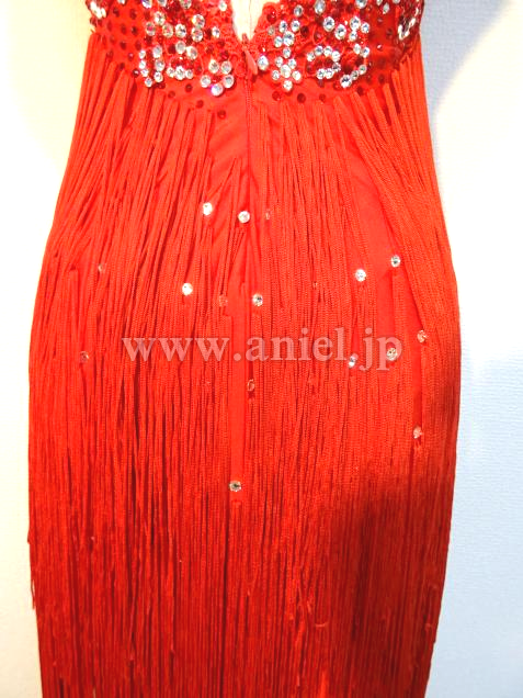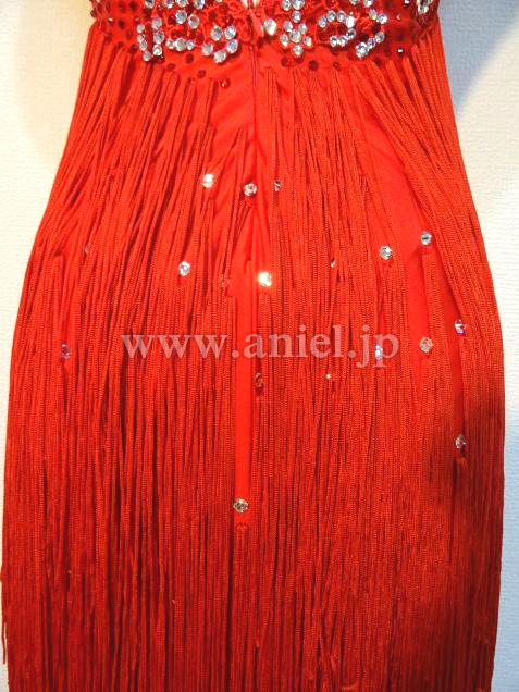 フリンジの下、胸まわり等、スワロフスキークリスタルを付けました。