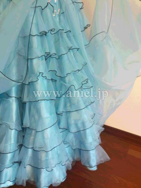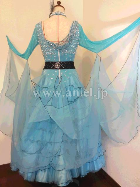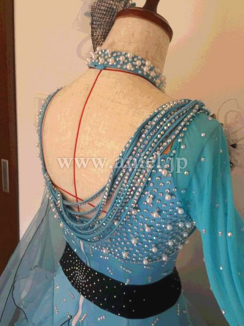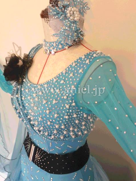 フリルに黒の巻きロックが有り、水色と黒の取り合わせが綺麗です。胸には真珠の大小と石の組み合わせが、豪華で真珠の付いたチョカーと髪飾りも付いています。インターパンツも有ります。