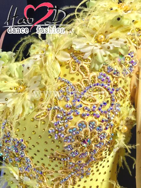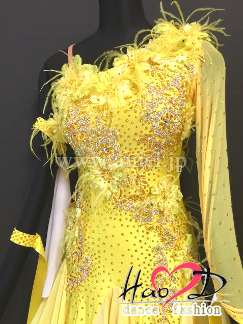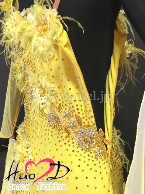 モチーフと身頃全体にオーロラ&黄色の石を散らし、キラキラとよく輝く