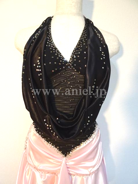 黒のボディに淡いピンクのスカートの組み合わせがキュートなドレスです。