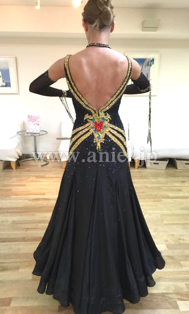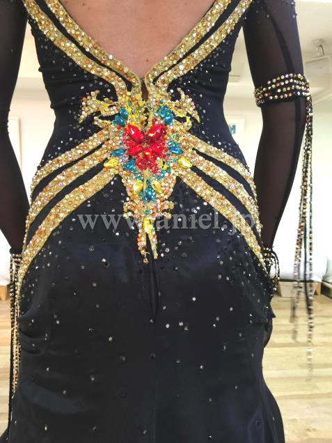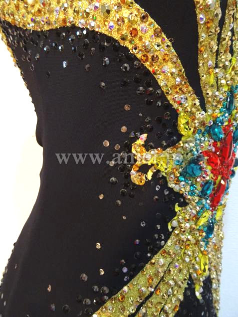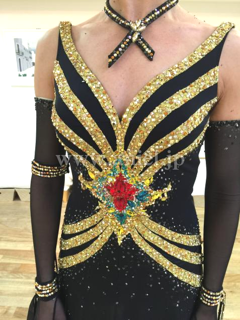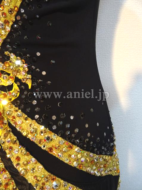 デザインが特徴的です。黒と黄色のコントラスト印象的でどの会場でも映えて、またとてもスリムに見えます。黒スカートの下に目立つ黄色を使い、動き度にそれが見え、スカートの動きをダイナミックに見せてます。