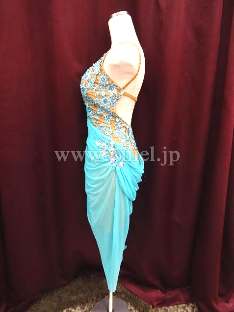 美しいカラーのドレスです。ロングドレープがセクシーに身体を包みます。