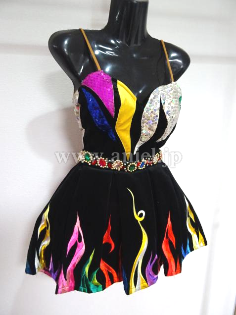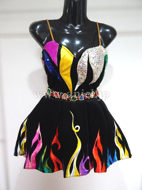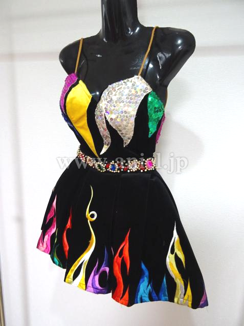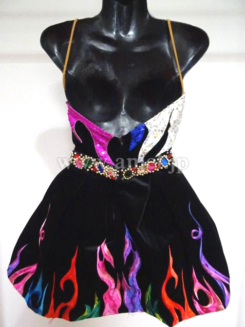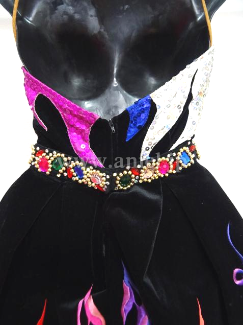 カラフルな模様の入ったベロアのボディが印象的なドレスです。