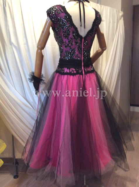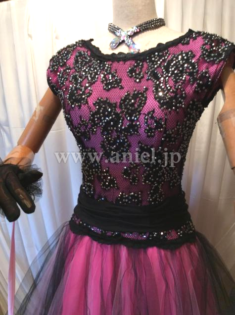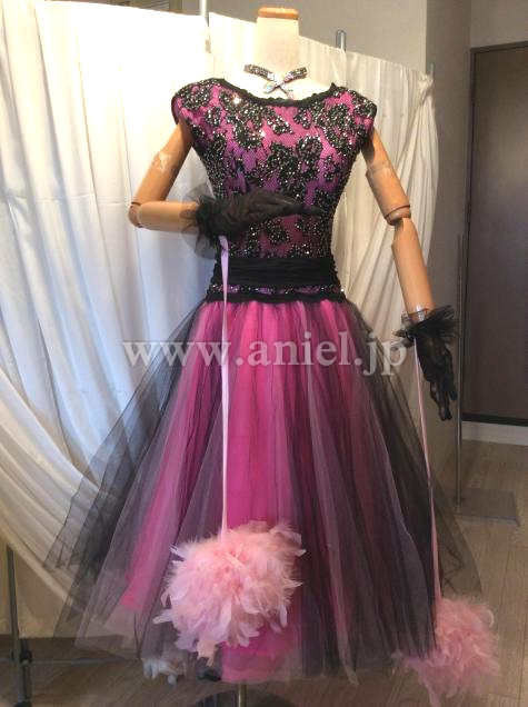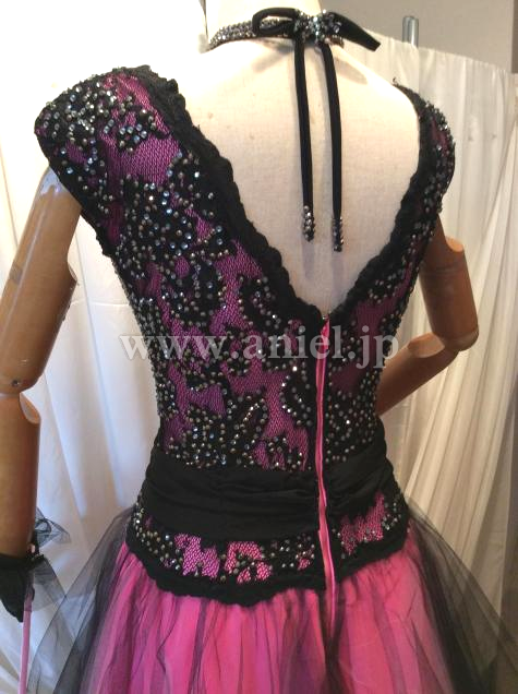 スカート部分はジョーゼットの上にピンクと黒のチュールがかさねてあります。
