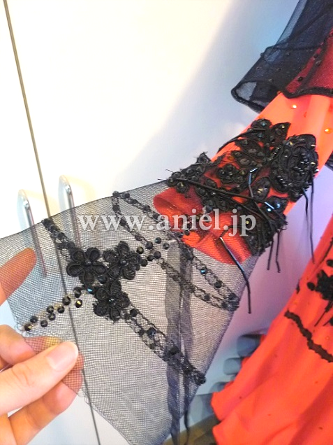 レースには細かくビーズフリンジがついています。