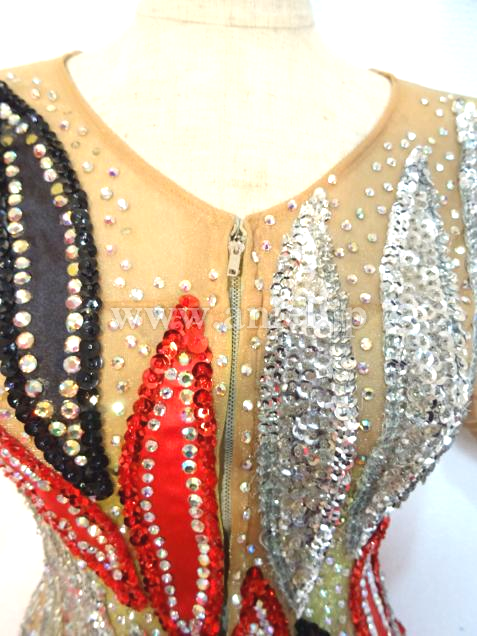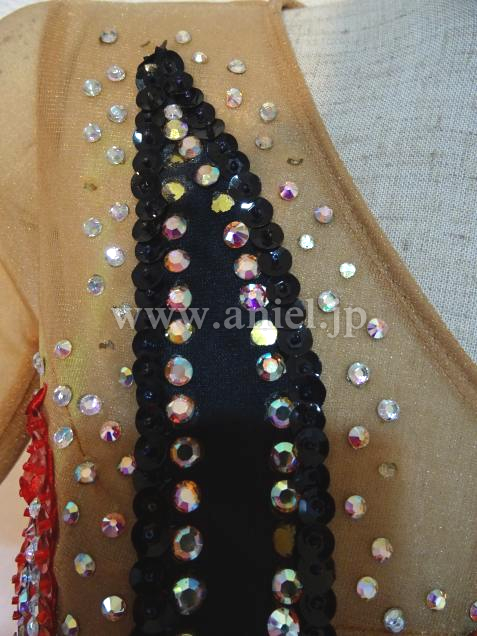 ベージュのボディに赤、黒、シルバーのモチーフが飾られています。