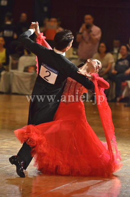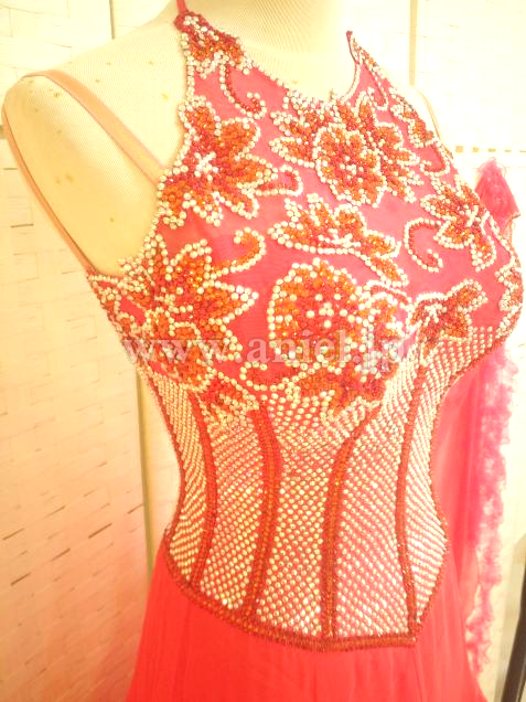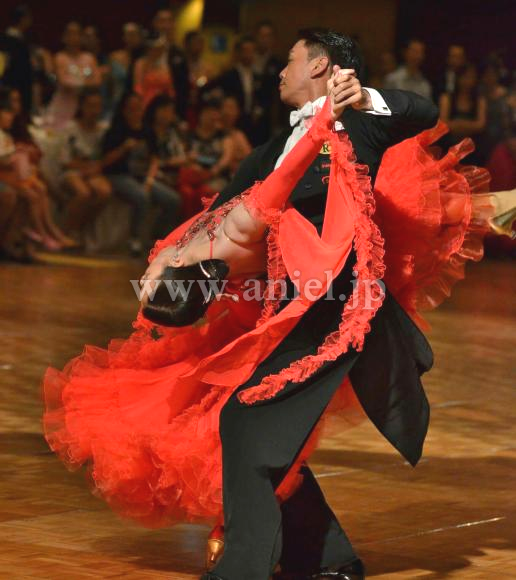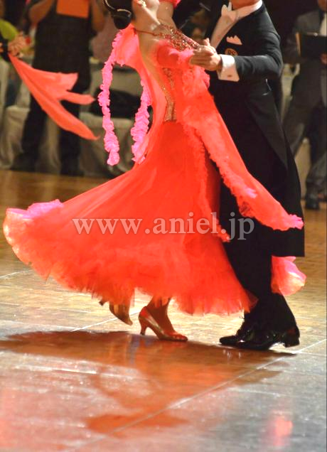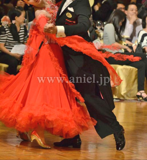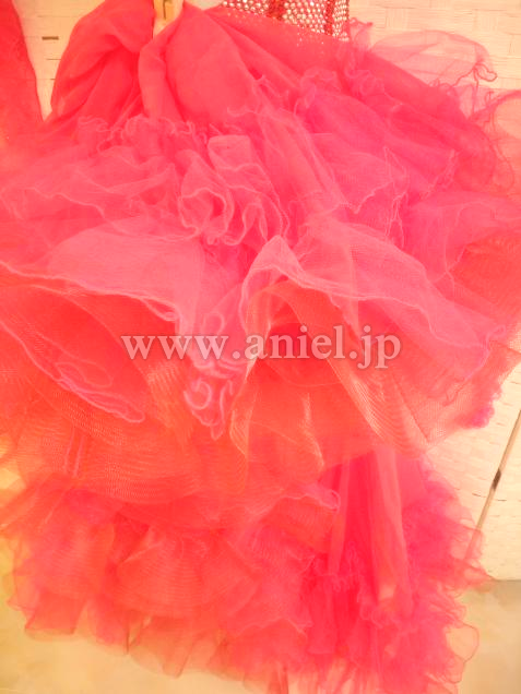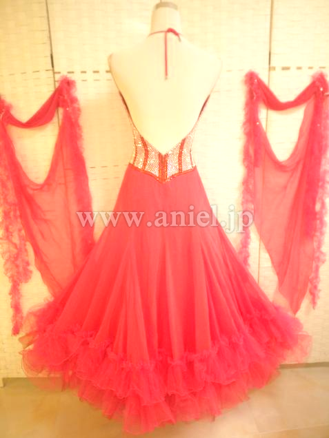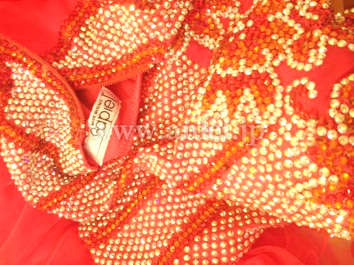 鮮やかなタンゴフレアにたくさんのスワロフスキーストーンがゴージャスに飾られています。