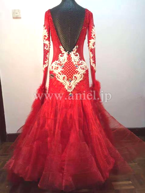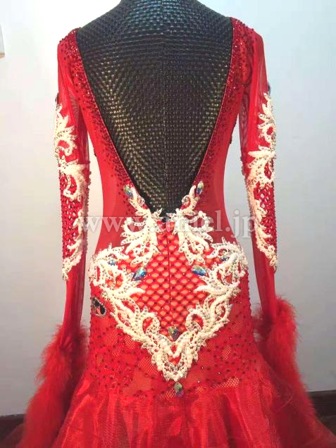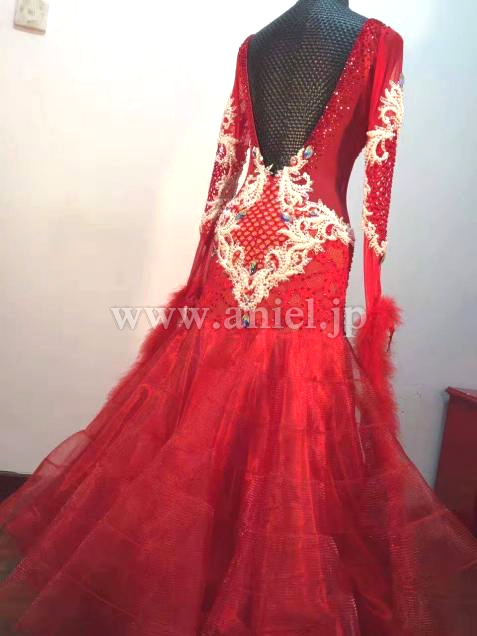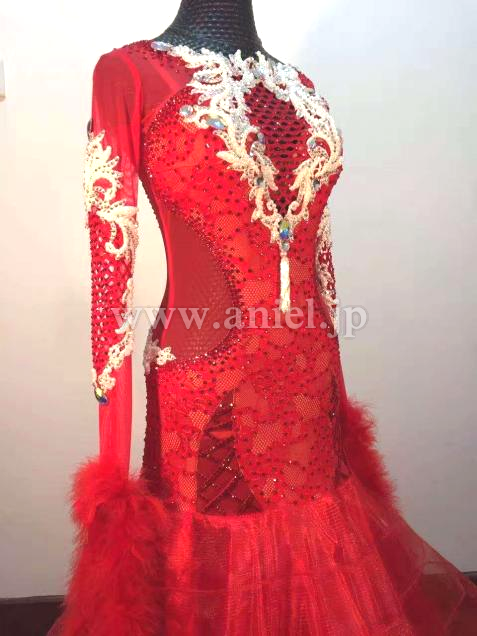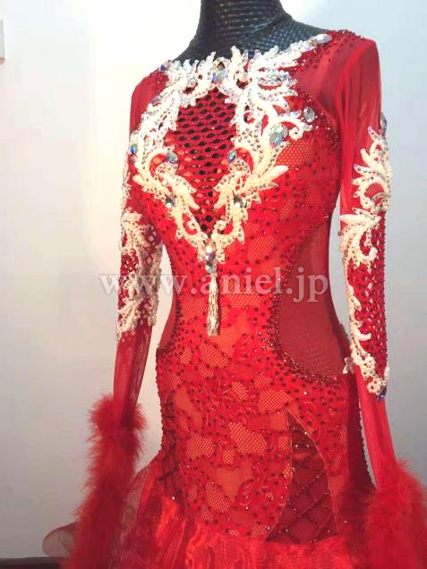 赤のレースを使用し、スタイリッシュなデザインのドレス。