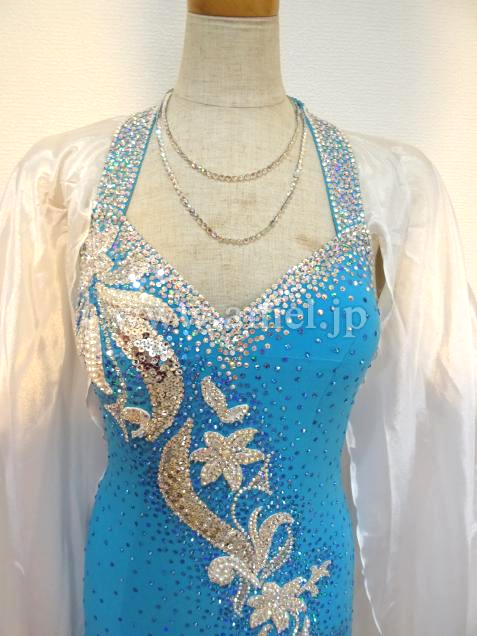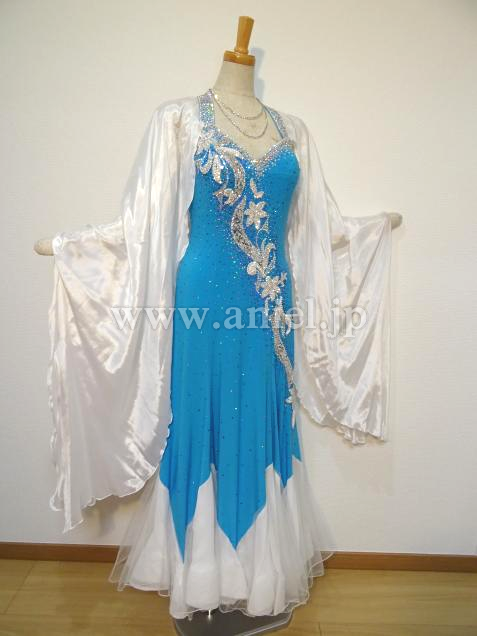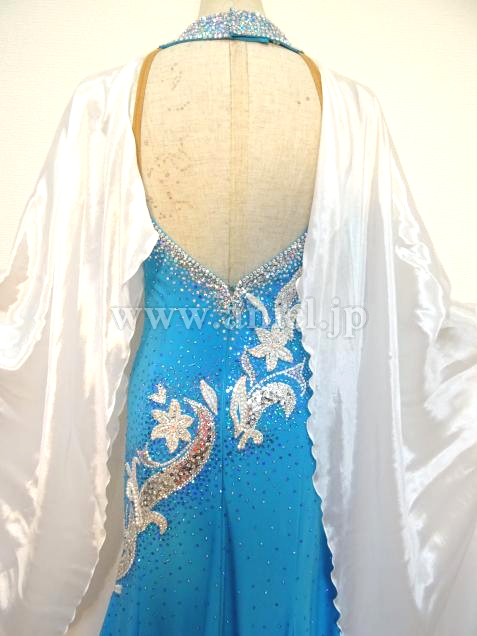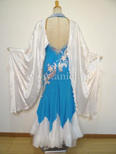 ターコイズブルーと白の組み合わせが爽やかで美しいドレスです。