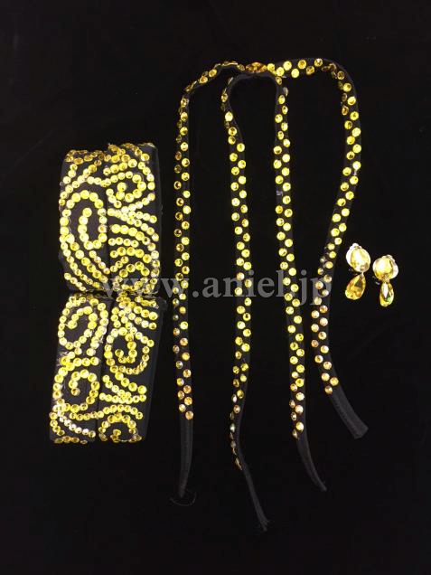 ブラックのシースルー生地にはっきりとしたイエローのストーンが美しいです。