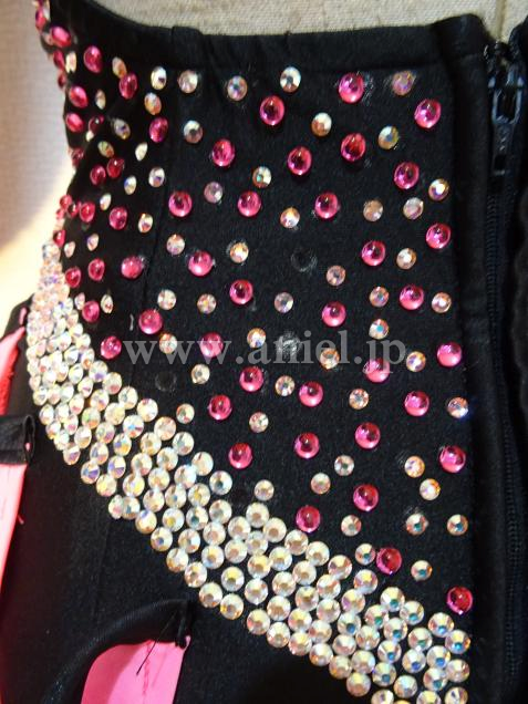 ボディ部分にストーンが多く使用されているドレス。