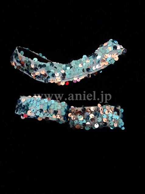 スパンコールを使用し、キラキラとするデザイン。