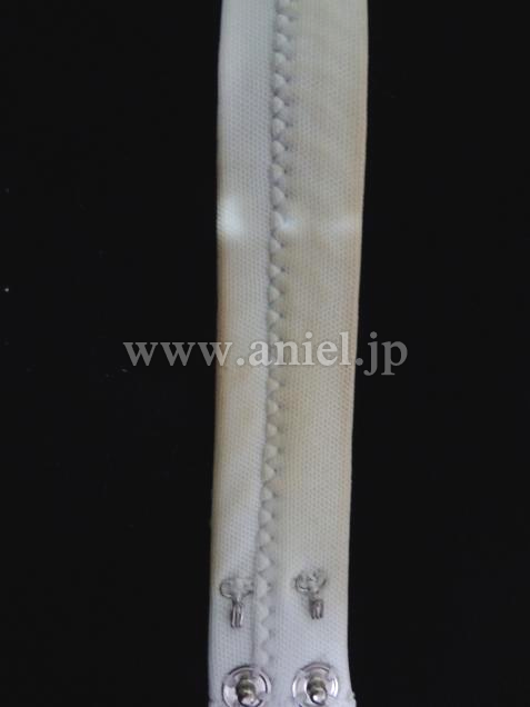 生地→★肩~ウエストラインには肌色の生地をベースに、網目大きめの白いメッシュ生地を被せ、軽やかな透け感を作り出します;