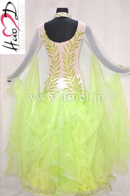 ★二枚目-----黄緑色のパールシフォン生地 + 裾にホースヘア;