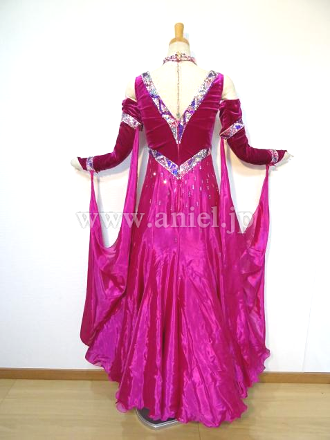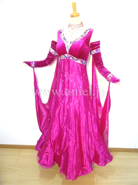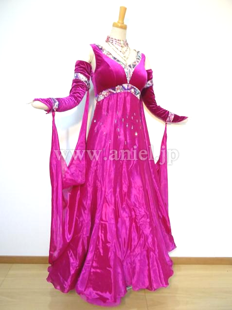サテンシフォンのスカートがフロアでよく光を反射して美しく映えます。